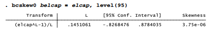such that y(λ) has approximately zero skewness. Applying this to elcap, we obtain the transformed variable belcap: