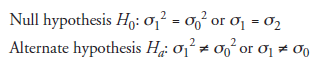 We need to note that, depending on what the experiment sets out to “prove,” null and alternate hypotheses may often be stated in terms of other statistical parameters, such as standard deviation or variance, as below:
