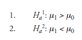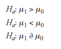 be either less than μ0 or more than μ0. Such hypotheses are aptly termed two-sided alternate hypotheses. Stating the hypotheses, instead, in the two variations