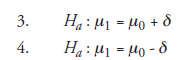 - If X ≤ μ0 + δ, the property did improve per target; hence, accept the alternate hypothesis.