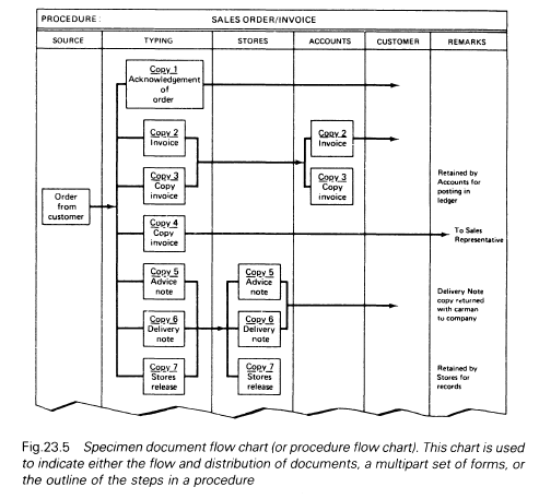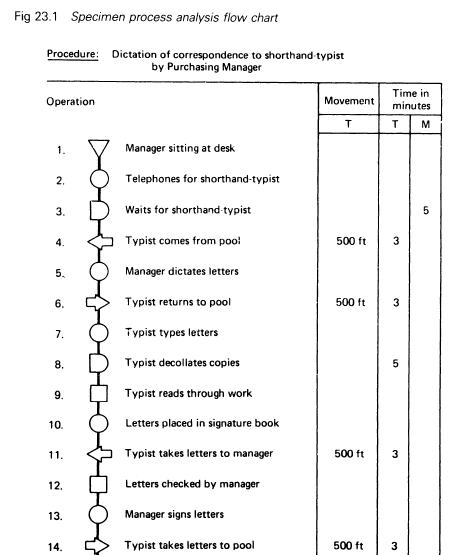Mention has already been made of the process analysis flow chart and the procedure statement and procedure narrative. Many other charts are used by practitioners of O and M, specimens of two of which are given in Figures 23.4 and 23.5.