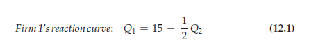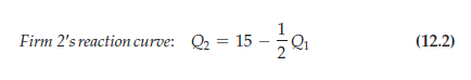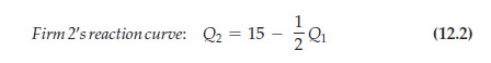 Because R1 depends on Q2, Firm 1 must anticipate how much Firm 2 will pro- duce. Firm 1 knows, however, that Firm 2 will choose Q2 according to the reac- tion curve (12.2). Substituting equation (12.2) for Q2 into equation (12.3), we find that Firm 1’s revenue is