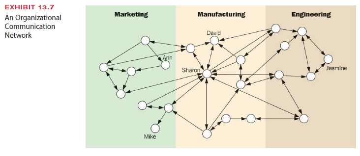 The value of personal networks for managers is that people who have more contacts have greater influence in the organization and get more accomplished. For example, in Exhibit 13.7, Sharon has a well-developed personal communication network, sharing information and assistance with many people across the marketing, manufacturing, and engineering departments. Contrast Sharon’s contacts with those of Mike or Jasmine. Who do you think is likely to have greater access to resources and more influence in the organization? Here are a few tips from one expert networker for building a personal communication network:55