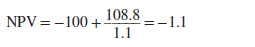 which is less than the opportunity cost of capital. Investors would not be willing to invest in a project that offered an 8.8% expected return if they could get an expected return of 10% in the capital markets. The net present value of such a project would be