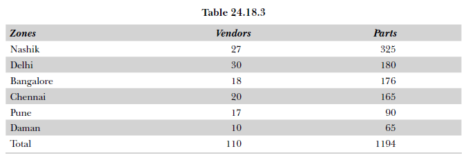 Padmini has a wide base of 900 vendors spread across the country. To ensure reliable and speedy deliveries, the entire inbound logistics activities were outsourced to a 3PL firm for transportation and storage at various points. The firm divided its vendors into seven zones for its plants. The 3PL firm was responsible for the daily milk run (in each zone) to collect the material as per the schedule, to either send it to the plant warehouse in case of full truckload or keep it at the hub warehouse in the zone until more material arrived to complete a truckload for dispatch to plants.