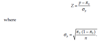 alternative hypothesis, H1. p # p0 (for a two-tail test)