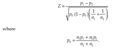 alternative hypothesis, Hy p 1 # p2 (for a two-tail test)