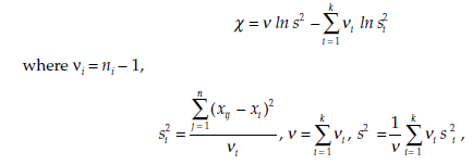 alternative hypothesis, H1: the values of σ2i (i = 1, 2, … , k) are not identical.