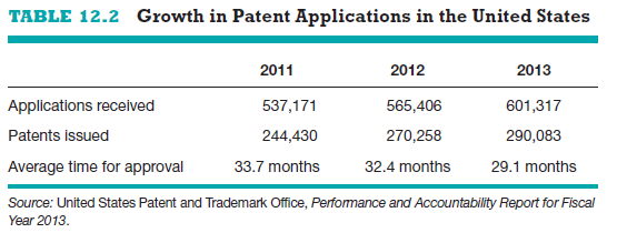 Some inventors and companies are very prolific and have multiple patents. There is increasing interest in patents, as shown in Table 12.2, as advances in technology spawn new inventions.