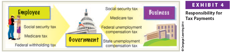 The preceding employer taxes are an operating expense of the company. Exhibit 4 summarizes the responsibility for employee and employer payroll taxes.