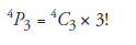 The six variations in each column headed by those, in the group of twenty-four numbers shown earlier, are simply the permutations possible with three things, all of them taken at a time; hence, the number of these is 3! Thus, the number of combinations possible with four things, three of these taken at a time, designated as 4C3, is related to the corresponding permutation as