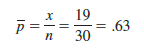 To estimate p, the proportion of managers in the population who completed the management training program, we use the corresponding sample proportion p. Let x denote the number of managers in the sample who completed the management training program. The data in Table 7.2 show that x = 19. Thus, with a sample size of n = 30, the sample proportion is