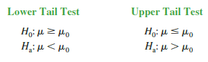 At the beginning of this section, we said that one-tailed tests about a population mean take one of the following two forms: