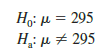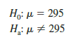 MaxFlight’s quality control program involves taking periodic samples of 50 golf balls to monitor the manufacturing process. For each sample, a hypothesis test is conducted to determine whether the process has fallen out of adjustment. Let us develop the null and alternative hypotheses. We begin by assuming that the process is functioning correctly; that is, the golf balls being produced have a mean distance of 295 yards. This assumption establishes the null hypothesis. The alternative hypothesis is that the mean distance is not equal to 295 yards. With a hypothesized value of m0 = 295, the null and alternative hypotheses for the MaxFlight hypothesis test are as follows: