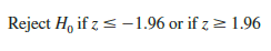 Critical value approach Before leaving this section, let us see how the test statistic z can be compared to a critical value to make the hypothesis testing decision for a two-tailed test. Figure 9.6 shows that the critical values for the test will occur in both the lower and upper tails of the standard normal distribution. With a level of significance of a = .05, the area in each tail corresponding to the critical values is a/2 = .05/2 = .025. Using the standard normal probability table, we find the critical values for the test statistic are -z.025 = -1 96 and z.025 = 1.96. Thus, using the critical value approach, the two-tailed rejection rule is