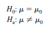 In hypothesis testing, the general form for a two-tailed test about a population mean is as follows: