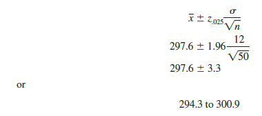 To test these hypotheses with a level of significance of a = .05, we sampled 50 golf balls and found a sample mean distance of X = 297.6 yards. Recall that the population standard deviation is s = 12. Using these results with z.025 = 1.96, we find that the 95% confidence interval estimate of the population mean is