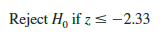 In the Hilltop Coffee example, x = 2.92 and the test statistic is z = -2.67. Because z = -2.67 < -2.33, we can reject H0 and conclude that Hilltop Coffee is underfilling cans.