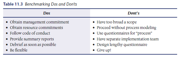 The dos and don’ts of benchmarking are given in Table 11.3.