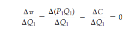 Here, A (P1Q1)/ A Q1 is the incremental revenue from an extra unit of sales to the first group of consumers (i.e., MR^. The next term, A C/A Q1, is the incremental cost of producing this extra unit—i.e., marginal cost, MC. We thus have