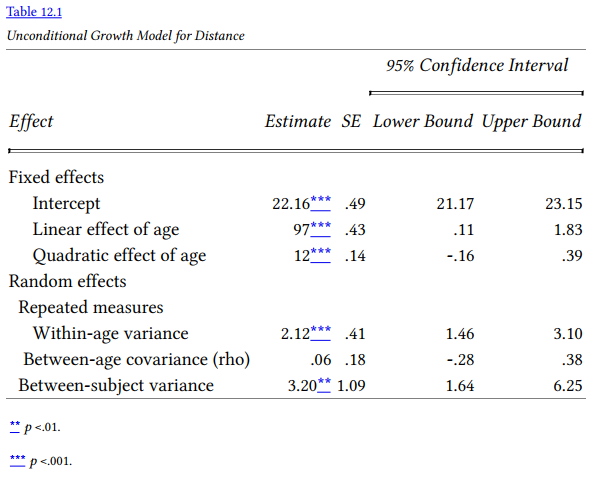 Output 12.1b Unconditional Model for Age Nested in Subject