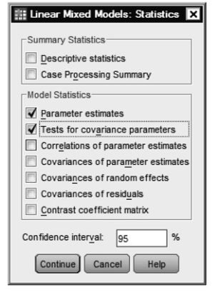 - Check Parameter estimates and Tests for covariance parameters. Your window should look like 12.15.