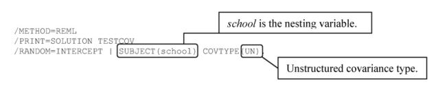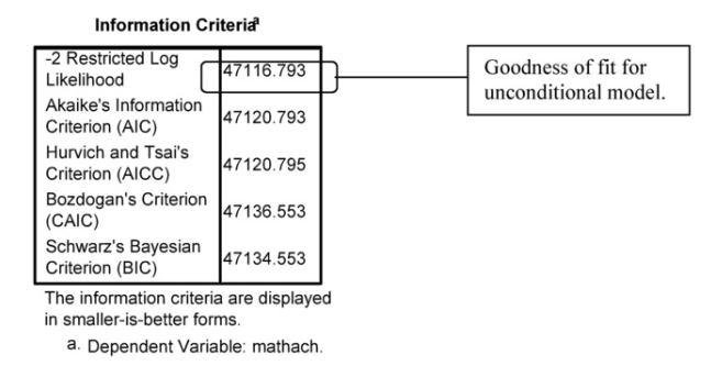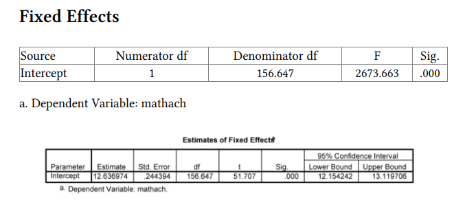MIXED mathach /CRITERIA=CIN(95) MXITER(100) MXSTEP(5) SCORING(1)