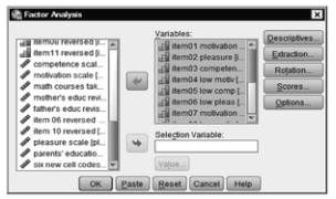 - Next, select the variables item01 through Do not include item04r or any of the other reversed items because we are including the unreversed versions of those same items.