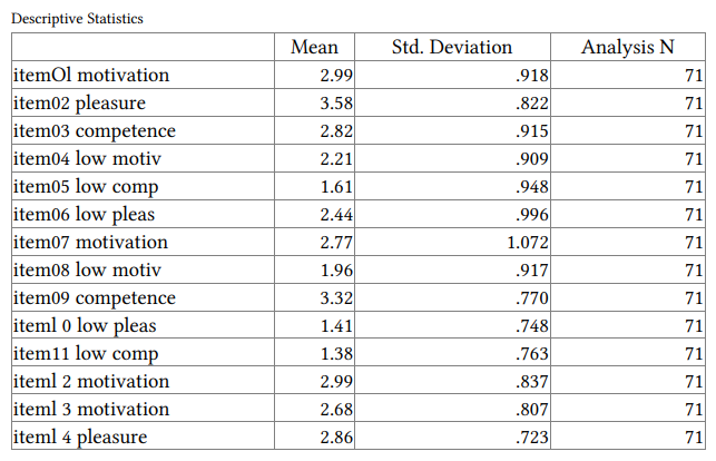 - Are there three constructs (motivation, competence, and pleasure) underlying the math attitude questions?