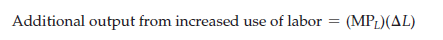 As our discussion has just suggested, the MRTS is closely related to the marginal products of labor MPL and capital MPK. To see how, imagine adding some labor and reducing the amount of capital sufficient to keep output constant. The additional output resulting from the increased labor input is equal to the additional output per unit of additional labor (the marginal product of labor) times the number of units of additional labor: