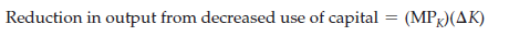 Similarly, the decrease in output resulting from the reduction in capital is the loss of output per unit reduction in capital (the marginal product of capital) times the number of units of capital reduction: