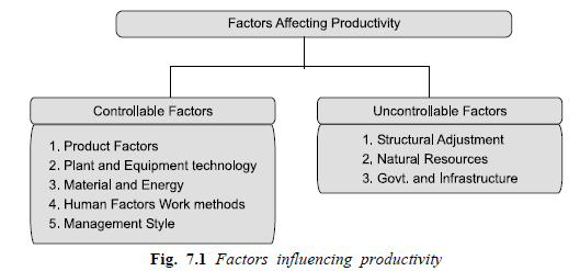Factors influencing productivity can be classified broadly into two categories: (A) controllable (or internal) factors and (B) un-controllable (or external) factors.