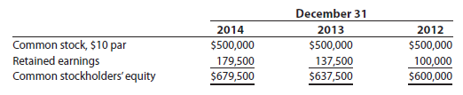 Lincoln Company had $150,000 of 6% preferred stock outstanding on December 31, 2014 and 2013. Thus, preferred dividends of $9,000 ($150,000 x 6%) are deducted from net income. Lincoln’s common stockholders’ equity is determined as follows: