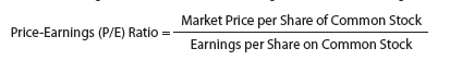 The price-earnings (P/E) ratio on common stock measures a company’s future earnings prospects. It is often quoted in the financial press and is computed as follows: