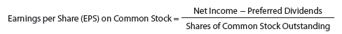 Earnings per share (EPS) on common stock measures the share of profits that are earned by a share of common stock. Earnings per share must be reported in the income statement. As a result, earnings per share (EPS) is often reported in the financial press. It is computed as follows: