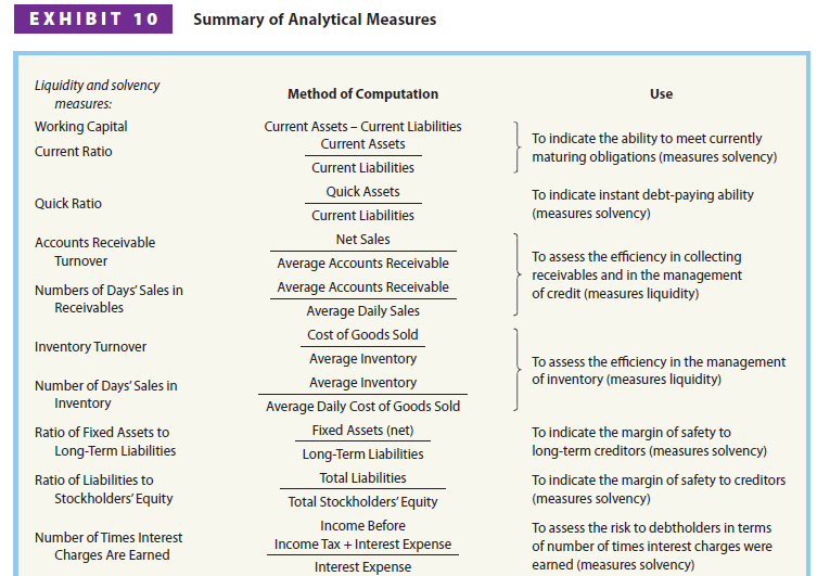 The analytical measures shown in Exhibit 10 are a useful starting point for analyzing a company’s solvency and profitability. However, they are not a substitute for sound judgment. For example, the general economic and business environment should always be considered in analyzing a company’s future prospects. In addition, any trends and interrelationships among the measures should be carefully studied.