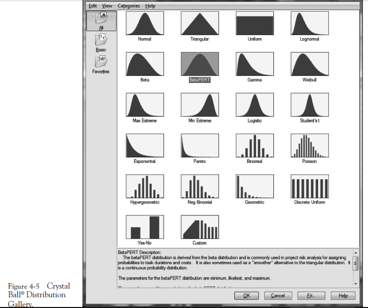 - CB allows you to choose from a wide variety of probability distributions. Click on the BetaPERT box and then click “OK” button to select it.