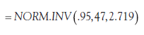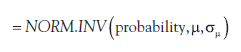 We can arrive at the same answer using the Excel® NORM.INV function. The syntax of this function is