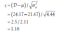 The exact nature of z will become clear shortly. Using the problem at hand, p = 47 days, D = 50 days, and 1.78 + .25 .00 + 4.00 + 1.36 7.39. (The square root of 7.39 = 2.719.) Using these numbers, we find