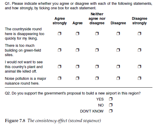 For example, in an ongoing customer satisfaction survey, respondents were asked to give a rating of their overall satisfaction with the service received on their most recent visit to the client company. This has then been followed with questions rating various staff and service attributes, including one on efficiency. After a while, a competitor introduces a guarantee that all transactions will be completed within 10 minutes or customers get their money back. To measure the impact of this, the client now asks that, on the next wave of the survey, a new question is inserted between the overall satisfaction question and the service attribute ratings, on how quickly the customers perceive their transaction to have been handled and how satisfied they were with that. The introduction of these questions at this point could influence the way in which respondents rate the individual service attributes, in particular the one relating to effi-ciency, as the speed of transaction has been raised higher in their consciousness than in previous waves of the study. Researchers must alert the client to the potential impact of such a change in the questionnaire on the comparability of the data with previous waves, and endeavour to find an alternative solution, such as a less sensitive position.