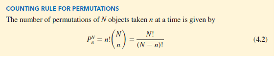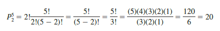 As an example, consider again the quality control process in which an inspector selects two of five parts to inspect for defects. How many permutations may be selected? The counting rule in equation (4.2) shows that with N = 5 and n = 2, we have