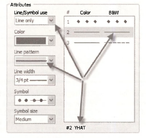 Select X, Y, YHAT, and EY from the workfile, double-click on one of these variables, and select Open Group. After the group is open as a spreadsheet, select View/Graph. In the Graph Options dialog box enter