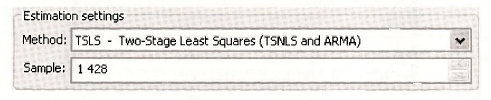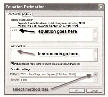 Now implement TSLS. Select Quick/Estimate Equation. The Equation specification is