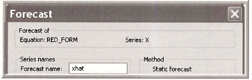 Save this estimated regression with the Name RED_FORM which stands for reduced form.. Select Forecast on the regression menu bar.