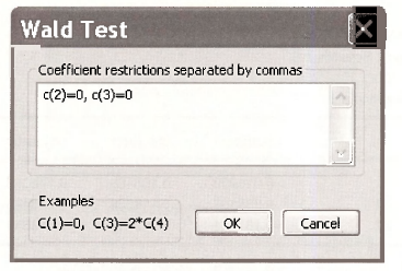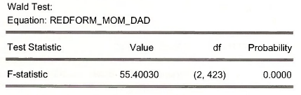 Both instruments are strongly related to the woman’s education EDUC. To test their joint significance select View/Coefficient Tests/Wald – Coefficient Restrictions. In the dialog box enter