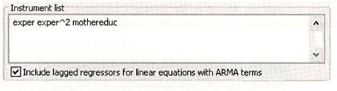 The Instrument list must include all the variables that are NOT correlated with the error term. These variables are said to be exogenous.