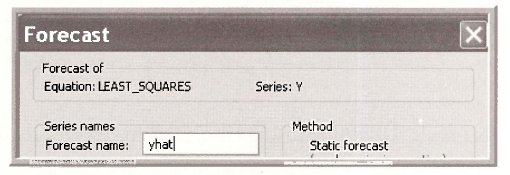 we estimate the simple regression and then obtain the forecasted (predicted) values of y. To estimate the equation enter