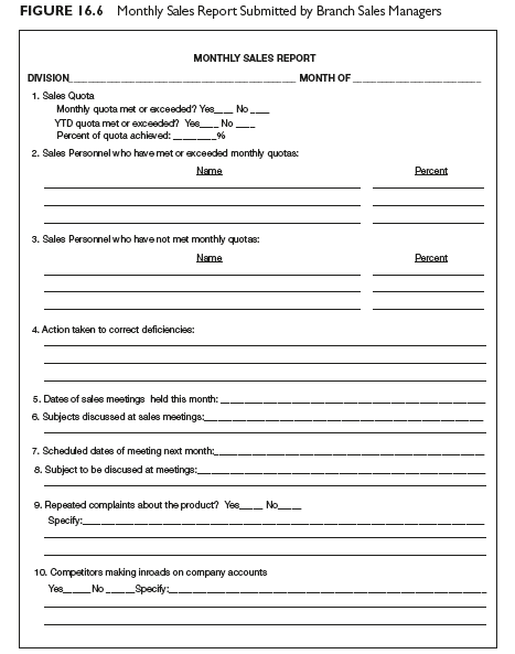 Among the reports sales management has available are those from sales personnel and the lower echelons of sales management; these are discussed in the following section. In addition, companies using such quantitative performance standards as sales volume quotas and target share-of-the-market percentages require information contained in sales forecasts, which, of course, are prepared not only for sales management’s use but for managerial planning throughout the enterprise.