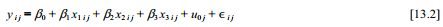 we could include not only a set of p coefficients that describe all the counties, but also a random intercept u0, which varies from one census division to the next.