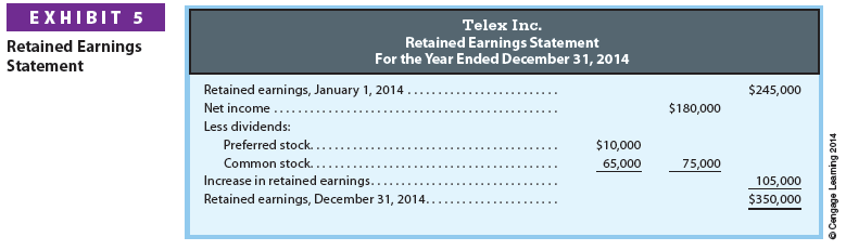 To illustrate, a retained earnings statement for Telex Inc. is shown in Exhibit 5.